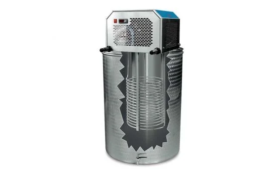The C1-W1 cooler is equipped with a direct heat exchange coil and is inserted in drums, tanks or containers to automatically control the temperature of the product by the included thermostat.